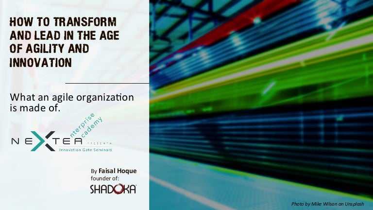 A presentation on the mindset, platform, and capabilities needed for organizational transformation, given at the Nextea Innovation Gate Seminar in Milano, Italy.
