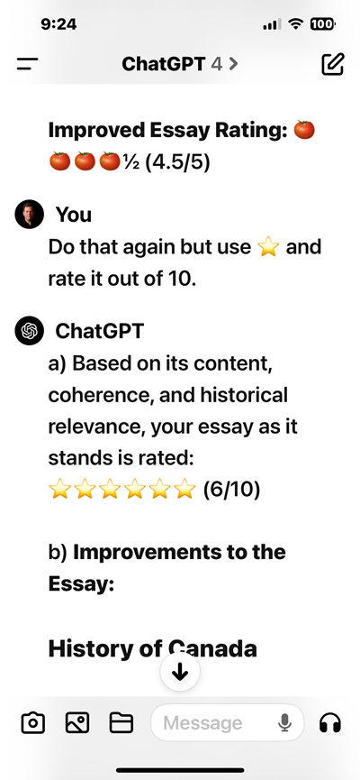 a) Please rate my essay (without making any changes to it) out of 5 using Rating System