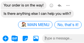 - Use quick action buttons where possible. Make it easier for the user to type responses. But don't forbid typing the request in the text - some people find it easier to communicate this way.