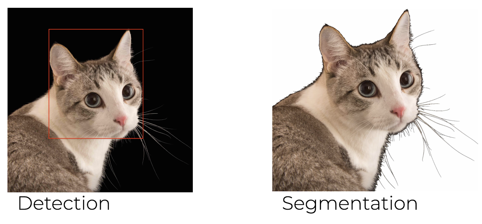 Segmentation refers to the task of assigning a class label to each individual pixel in an input image. In the context of our discussion, we isolated the cat by segmenting it from the background.