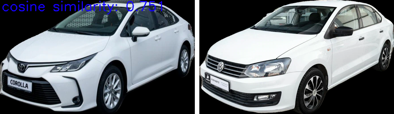 Let's look at an example where I took a picture of my car first from the right-hand side, and then from the left-hand side. Now, I can calculate the embeddings (vectors) for these pictures, and if these vectors are close in space, this indicates that it is the same vehicle.