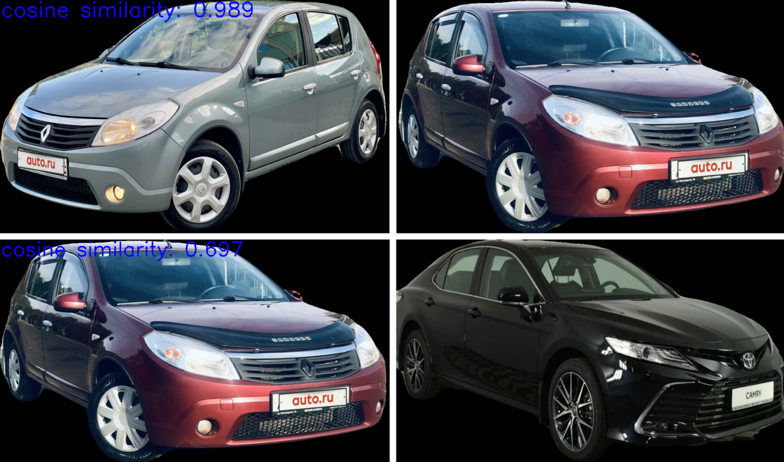 In fact, it consists of several models that independently process two images at the input, and give out the vehicle’s license plate number and its vector, at the output. As a result, based on the details compared, a verification decision is made about the two photos under review.