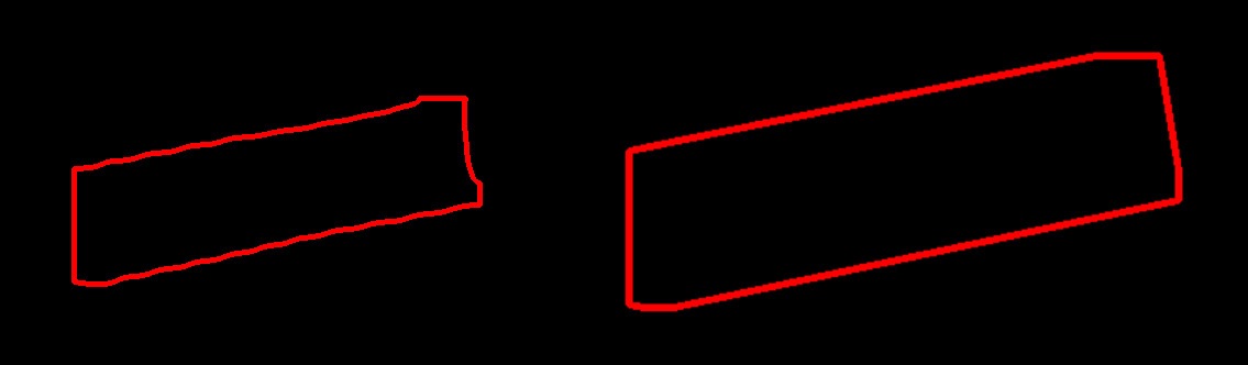 Next, we drew a contour line using the mask and applied ConvexHull to smooth it. This simple algorithm smooths out (straightens) the concavities of our contour line, making it straighter. This can be described as a smaller number of angles in a contour polygon.