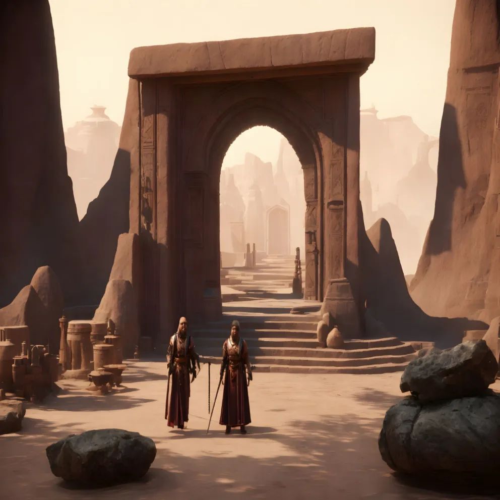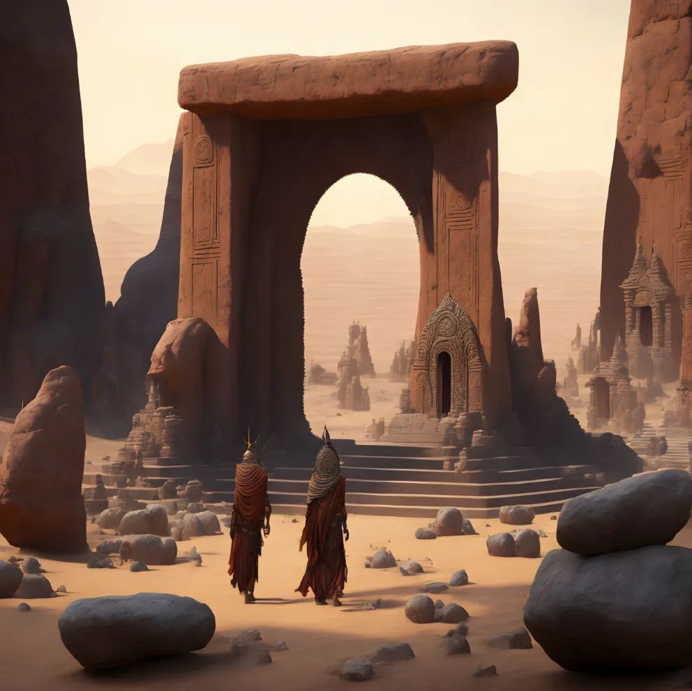 "This next pair said that yes they knew of such things. They had also heard we might be coming. And they confirmed our understanding that this all involved a place called 'The Gate'. Indeed, it did look like a gate but without much of a wall or fence.