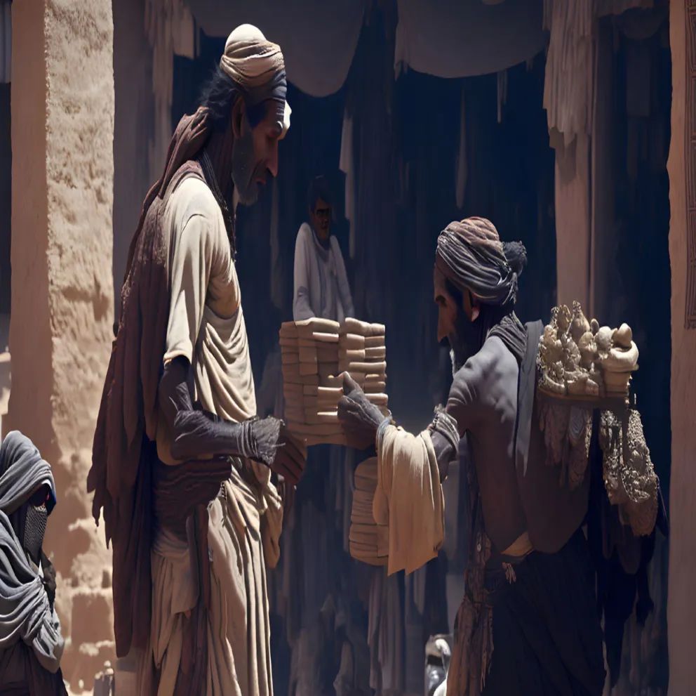 "We saw these guys trading what looked to be pottery bowls. We asked them if they knew about any strange recent events, or a 'gate'. No, of course not. We should ask at the shop of many colors just down the way. Maybe our luck would improve."