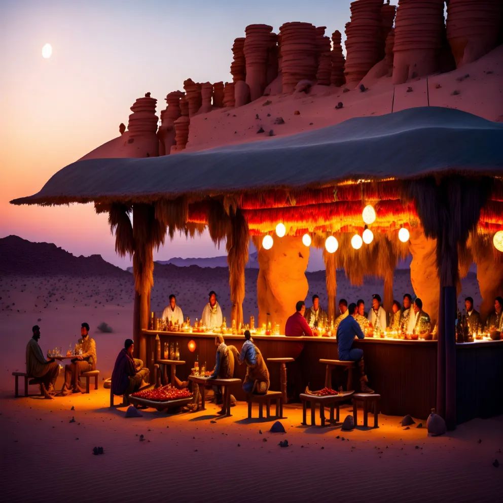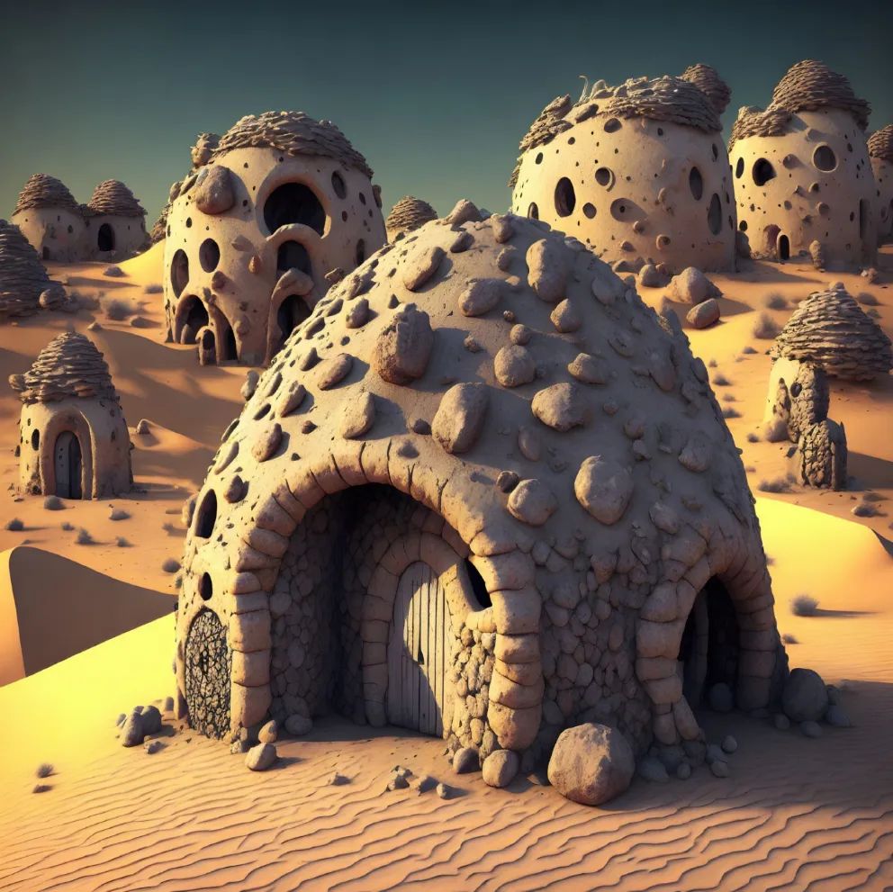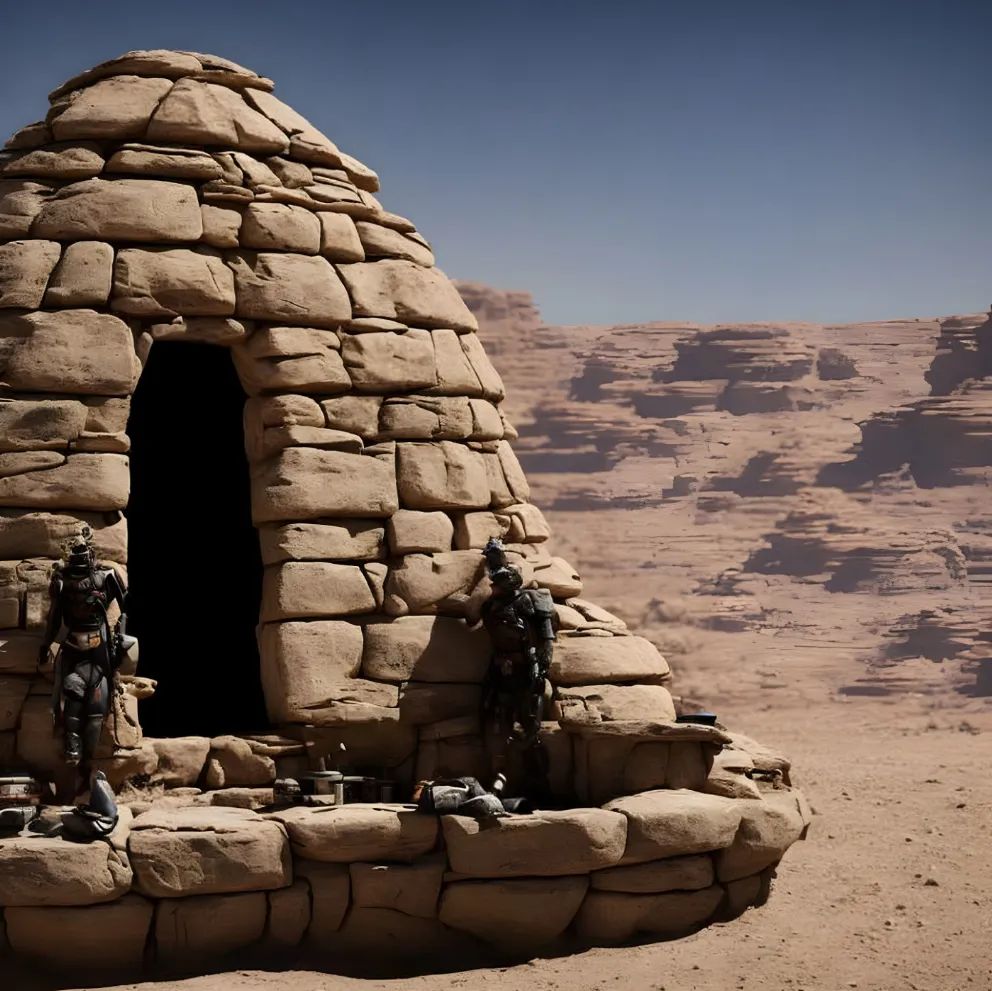 "Before long, we arrived at Heevus' desert camp. It was a bit more than half way across the distance between the Megaplex and the Valley Wall. Most of the habitat's livable space was actually underground."