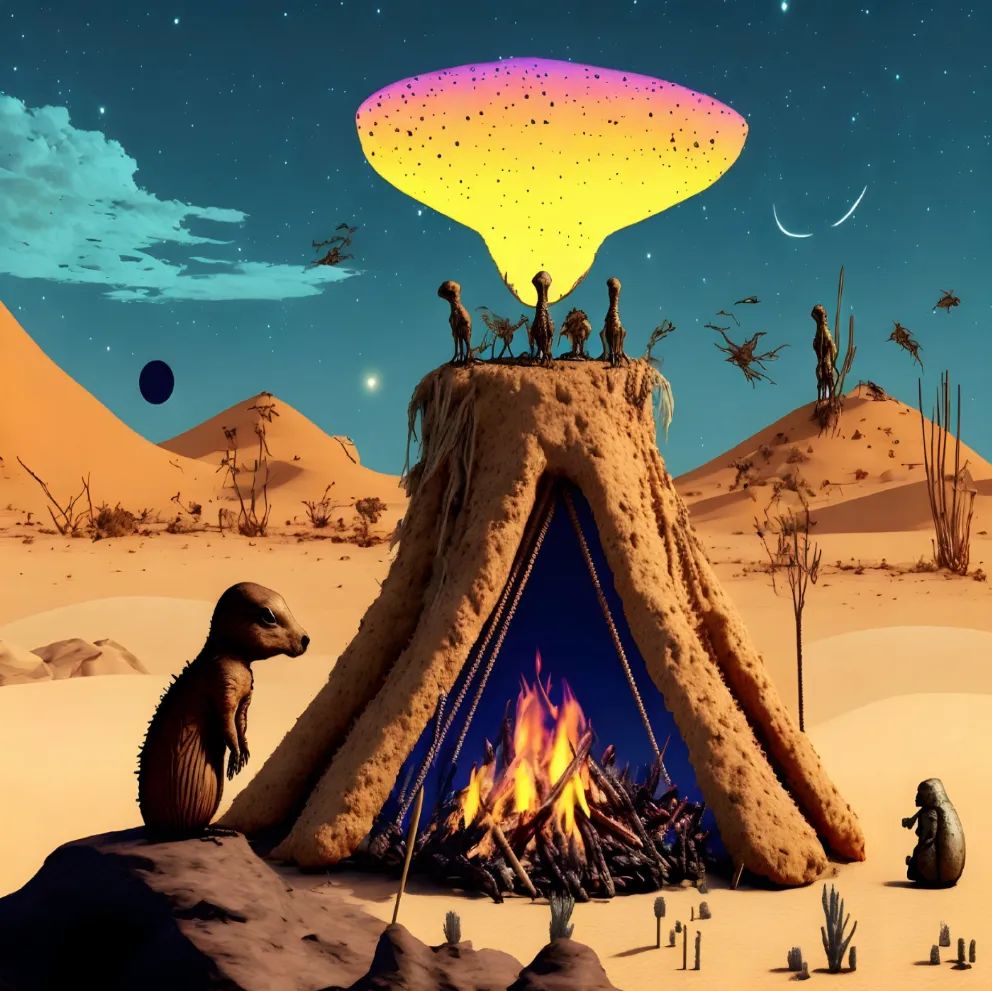 "By now, it was evening and we joined a group around a village firepit to share sand dog barbecue or whatever other fare might appear. The occasional sand dragon offered a small change from the everyday."