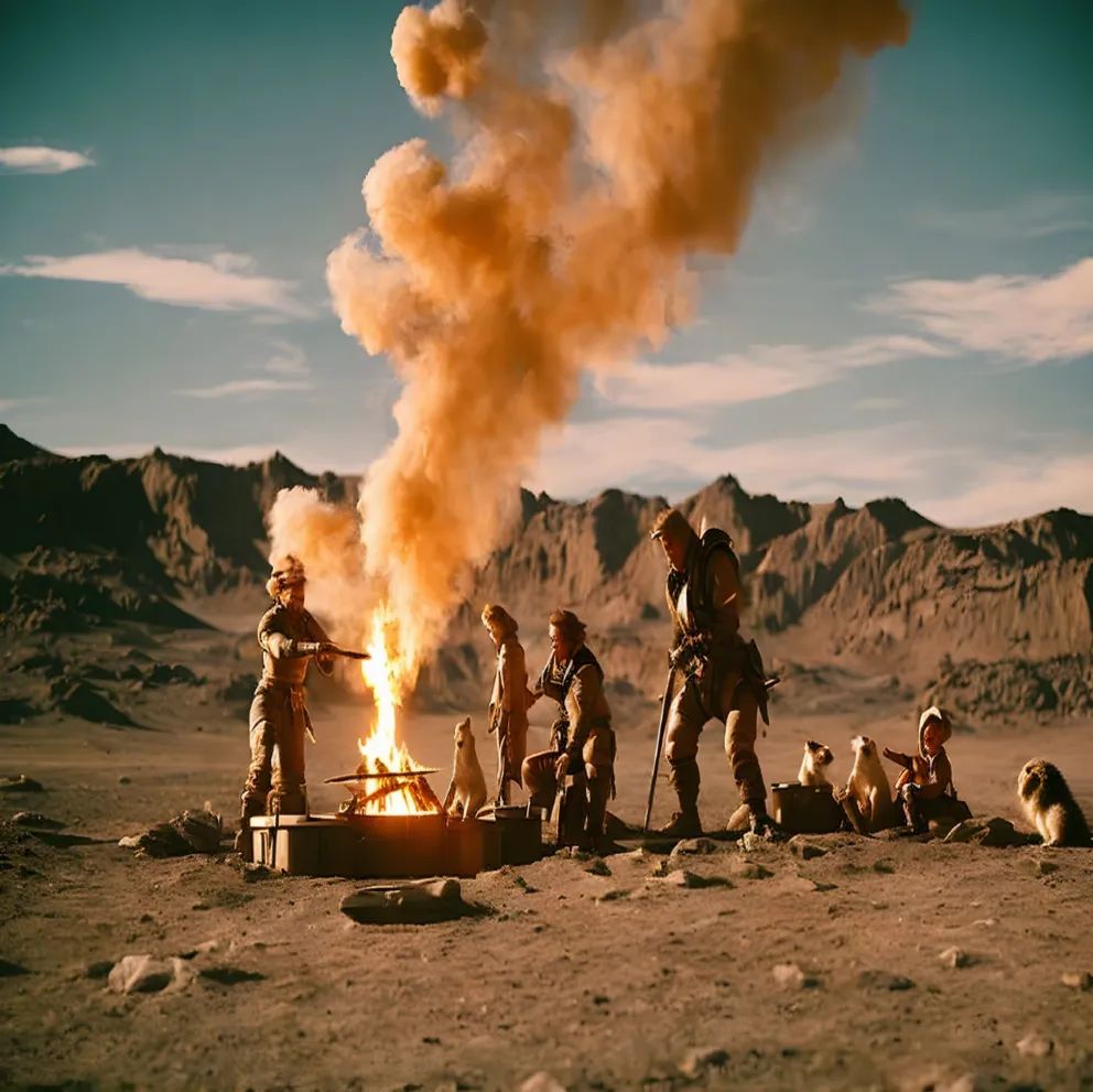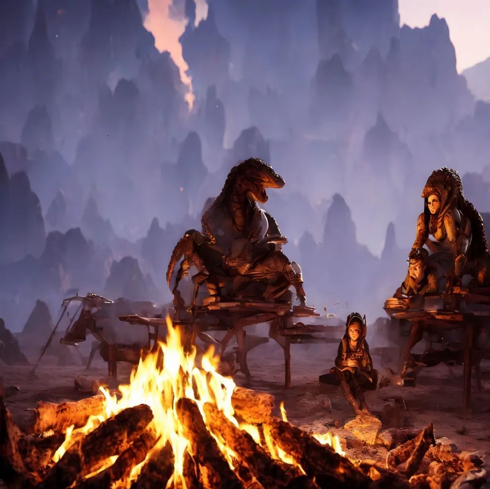 "Later, we went outside and joined some folks at their fire. They had a sand dragon they had more or less domesticated and some of the adults would join us on the trek. Yes, the barbecue was excellent."