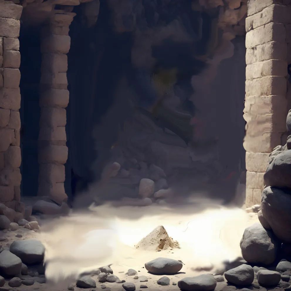 "Deeper in the 'temple' and down a short passageway, we found a room that contained a lot of what first appeared to be clay blocks and some pyramid object."