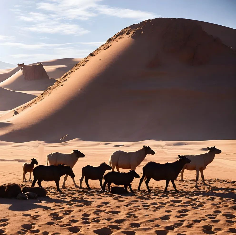 "She had a small herd of some kind of livestock animal she was shepherding. Some of her companions hung back."