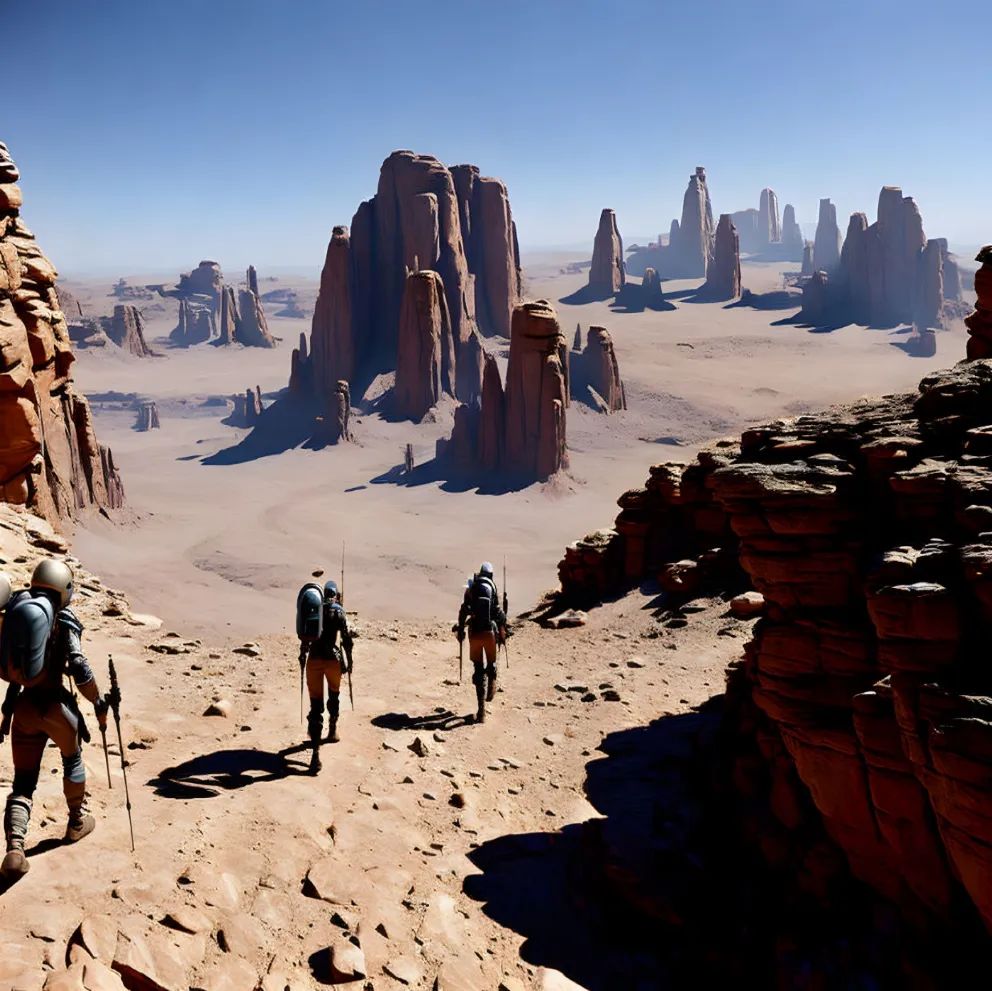 "The next day we were all going to depart on a trek toward the Valley Wall, a range of steep mountains at the Valley's edge. We were all going to use exosuits but our transportation would be old school hiking on foot.