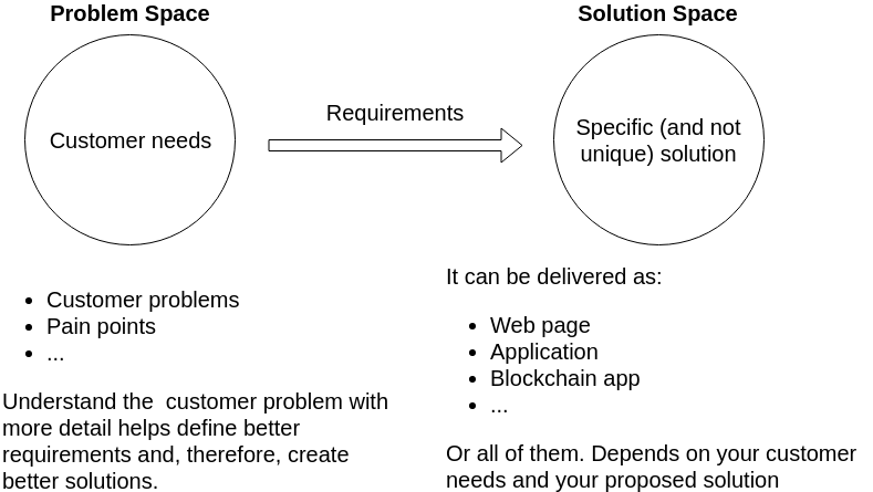 All products are the specific solution implementation over a problem space. The solution space has to be guided via the problem space, otherwise we might be building something that it’s not needed by the user.