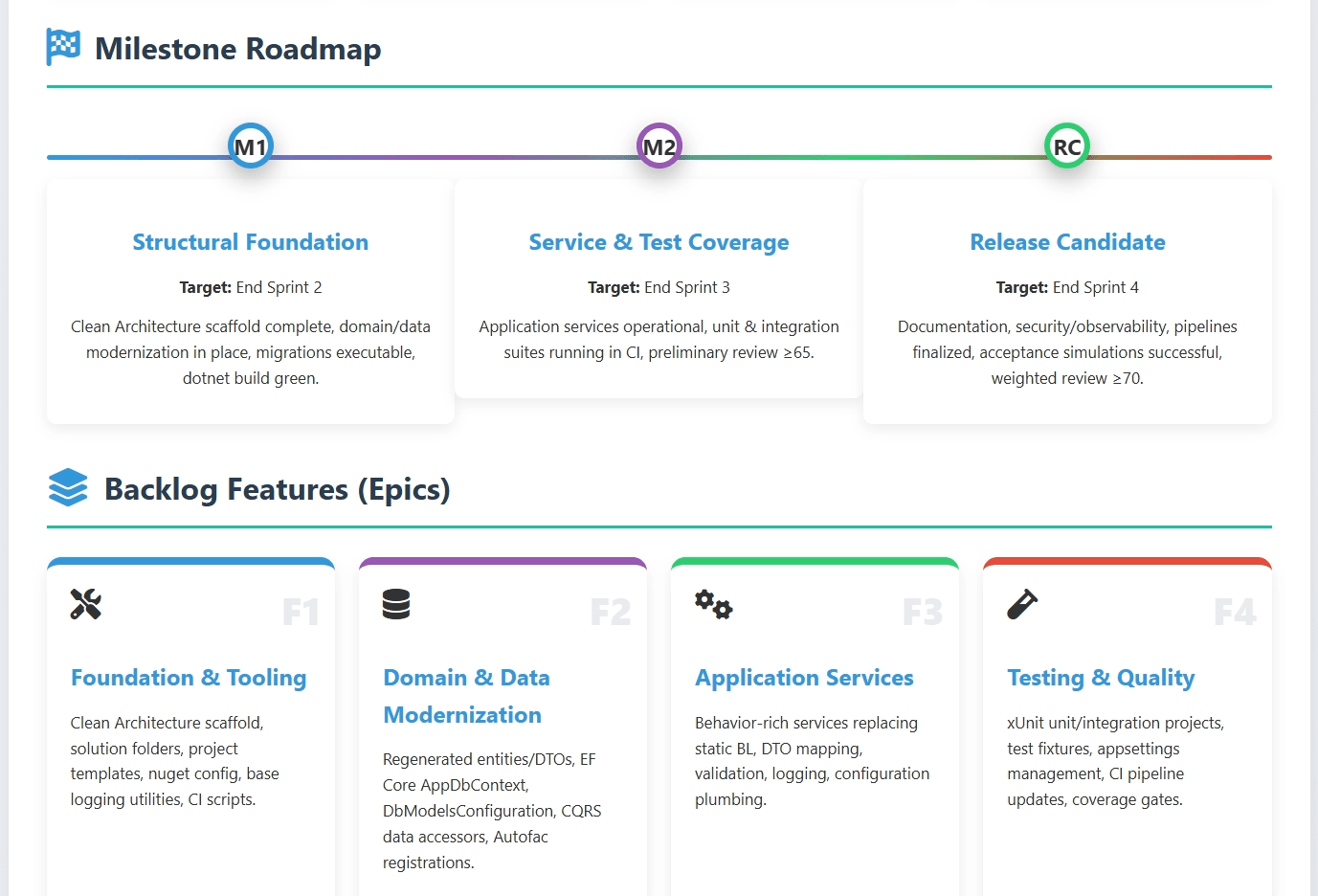 - Needs a complete rewrite to .NET 10 with Clean Architecture