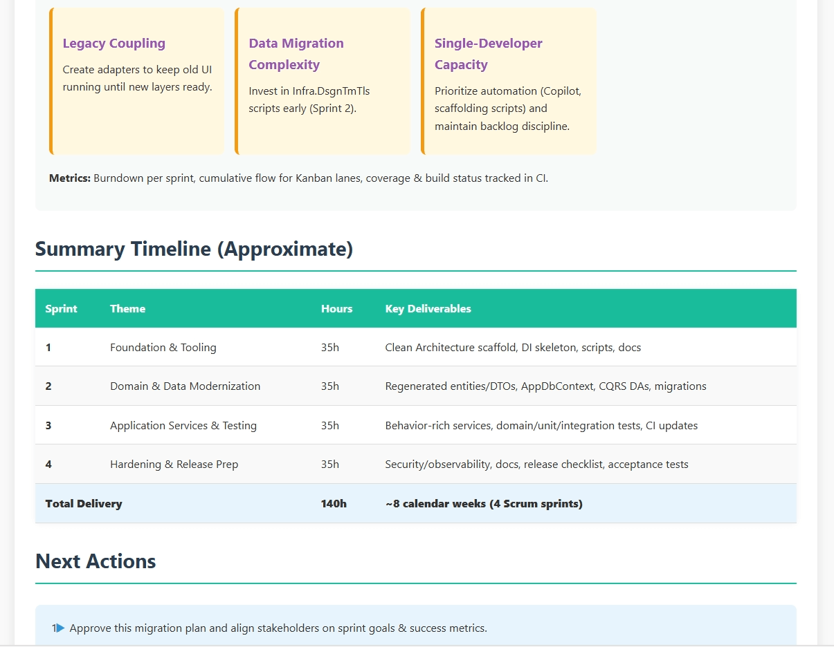 - Tested GitHub Copilot for sprint planning a .NET rewrite