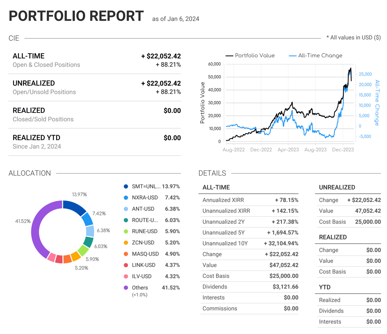 If anything, it's probably higher today because the crypto market's higher now than on January 6, 2024, when he sent me this report.
