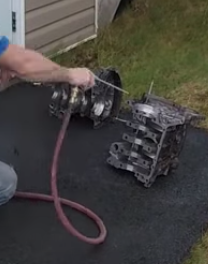 Feb 1st, LEFT: Pistons are out, RIGHT: The block is split and the only things left are the piston rods and the crankshaft.