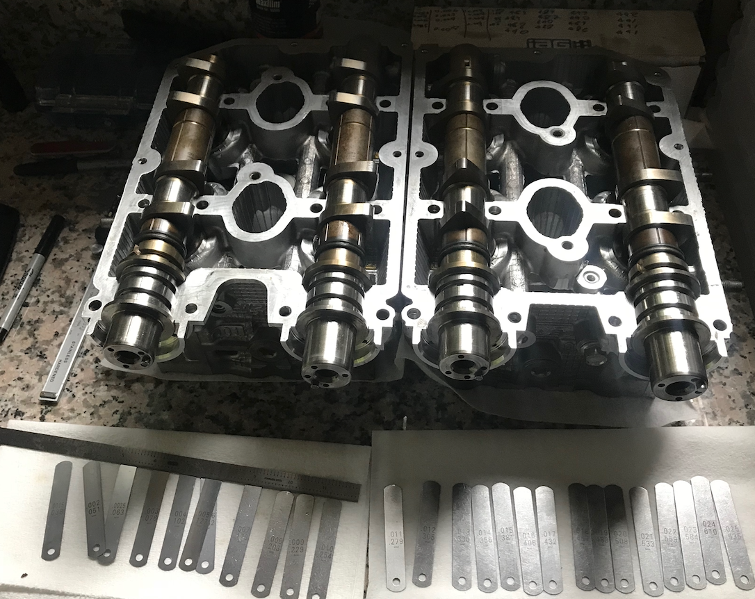 This part is quite tricky, need to readjust clearances between camshafts and valve buckets before mounting the cylinder heads. 30h left?