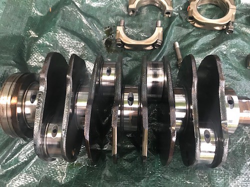 Machined cylinder heads, cylinder walls and the crankshaft. ARP head studs mounted.