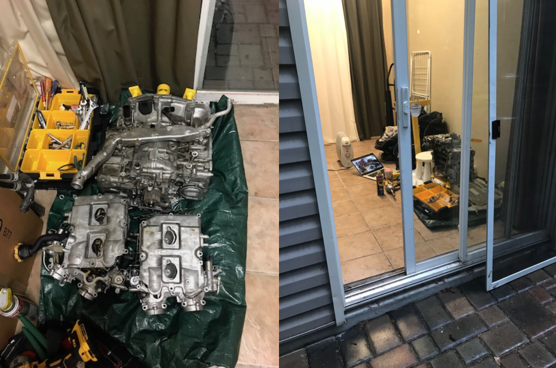 LEFT: Jan 1st, 2018. Impact wrench, crane and coffee, RIGHT: Jan 2nd, 2018. Pulled it out, that’s about 15 hours so far and a approximately 5% of the total work.