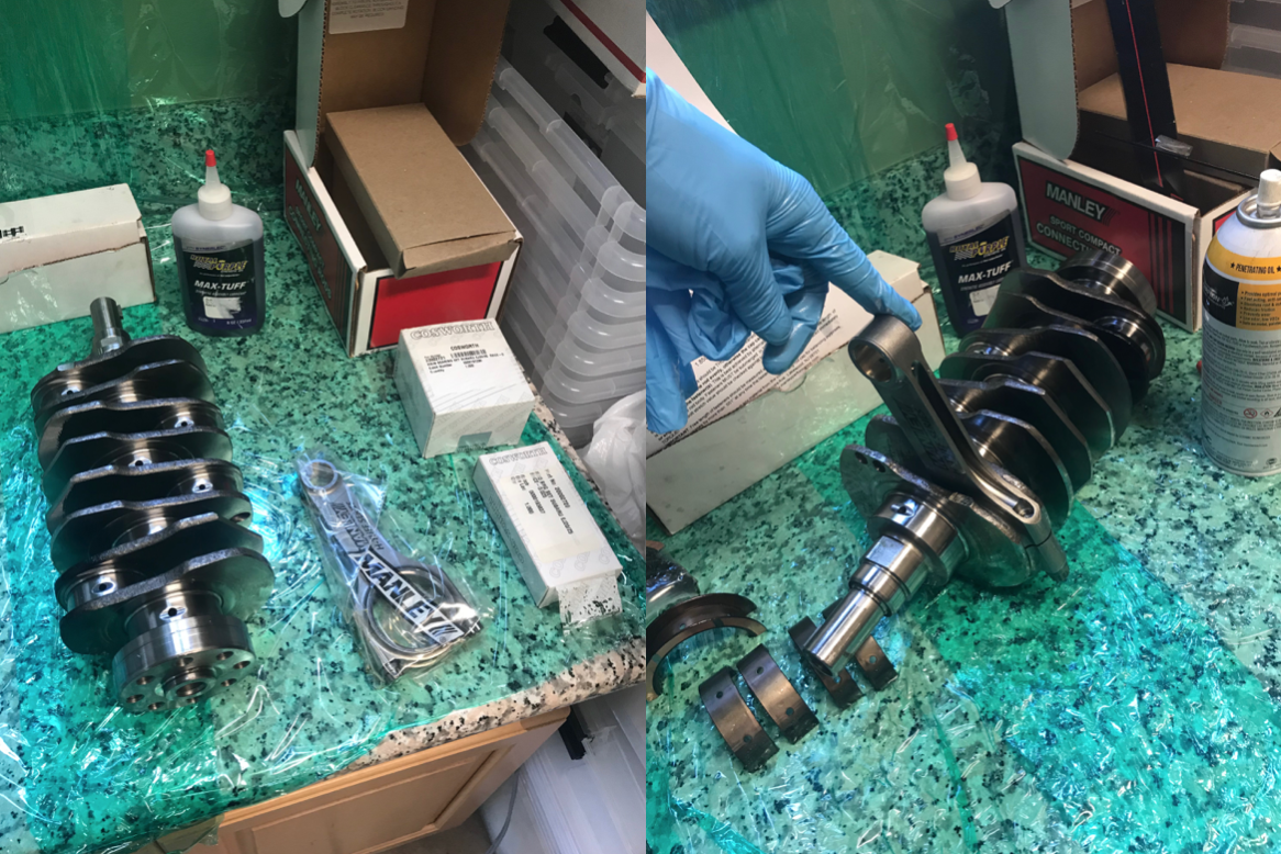 LEFT: Preparing to assemble the most important parts — the rotating assembly — RIGHT