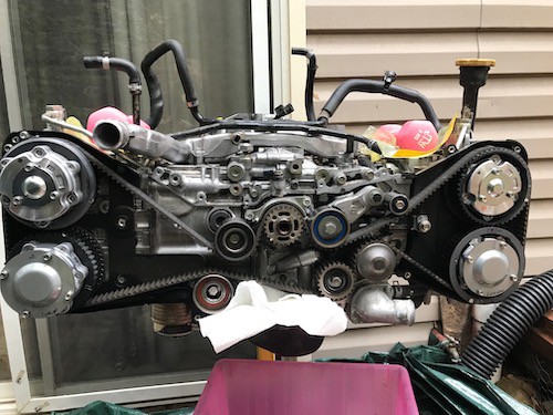 Putting timing belt back on was tricky too. Almost done. 15 more hours and it should be ready.