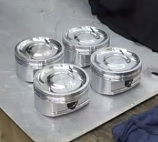 LEFT: This is a replacement for the part which failed (rod bearing). RIGHT: New pistons.