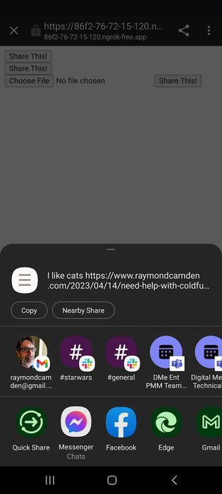 For today, I want to share what I found about an API I was aware of but had not yet had a chance to play with - the Web Share API. While generally well supported, my testing with it left me feeling like it's not quite ready yet for usage. Here's what I found.