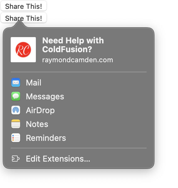 When I started thinking about this API, my plan was to actually use it here to enhance the sharing options you see at the bottom of the post. For now, I've changed my mind about that.