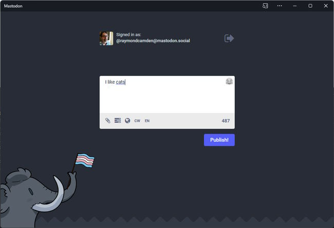 Notice Mastodon is back. Clicking that gives me: