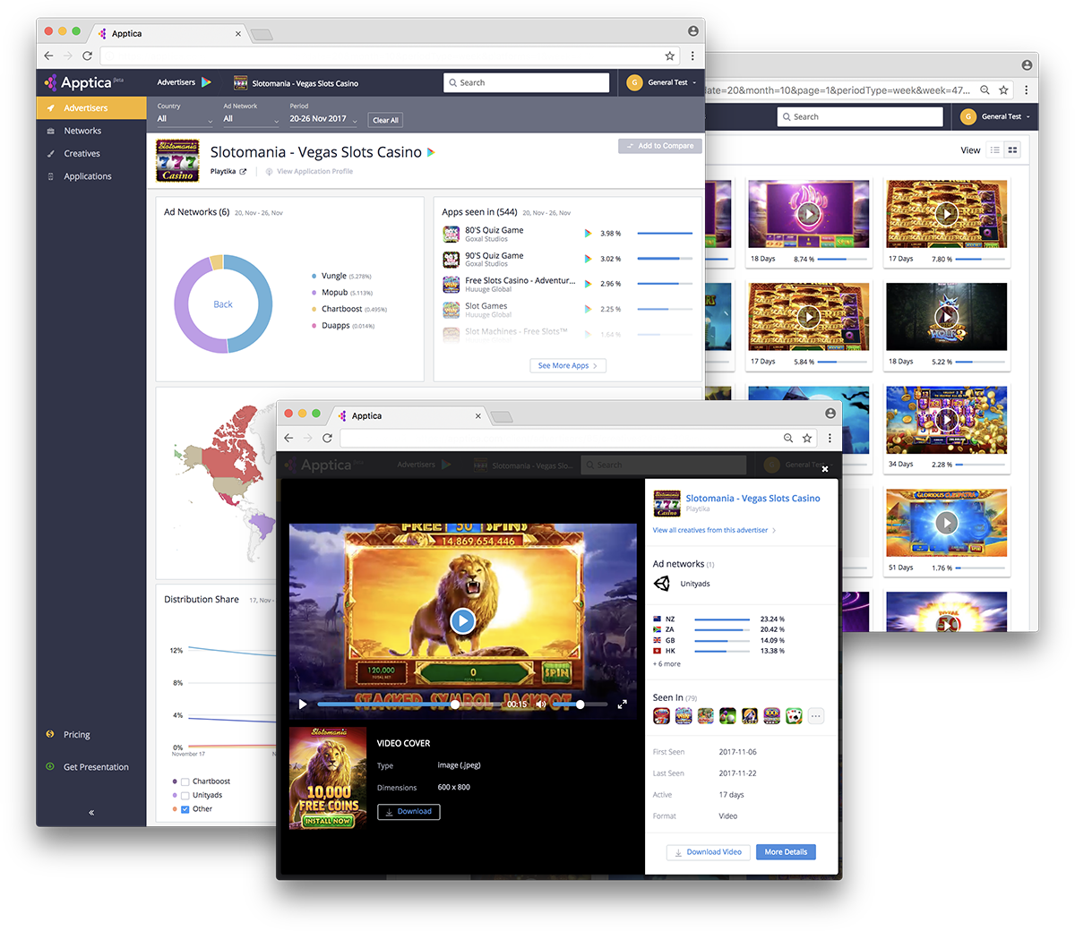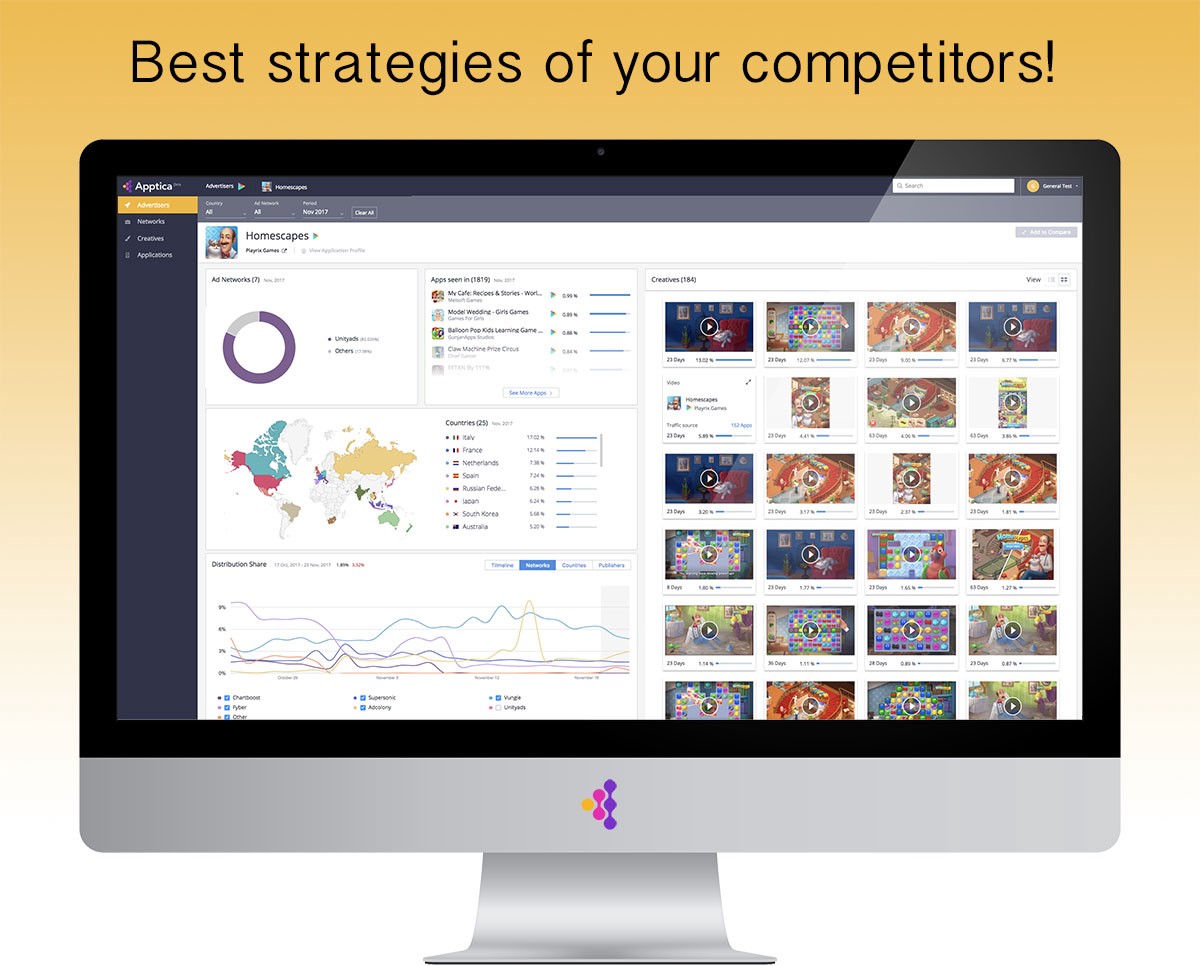 Monitor Top in-app ad campaigns with most effective formats and creatives around the world, across all categories and countries. Analyze in-app traffic sources, find new customers, track competitors and advertiser’s activity.