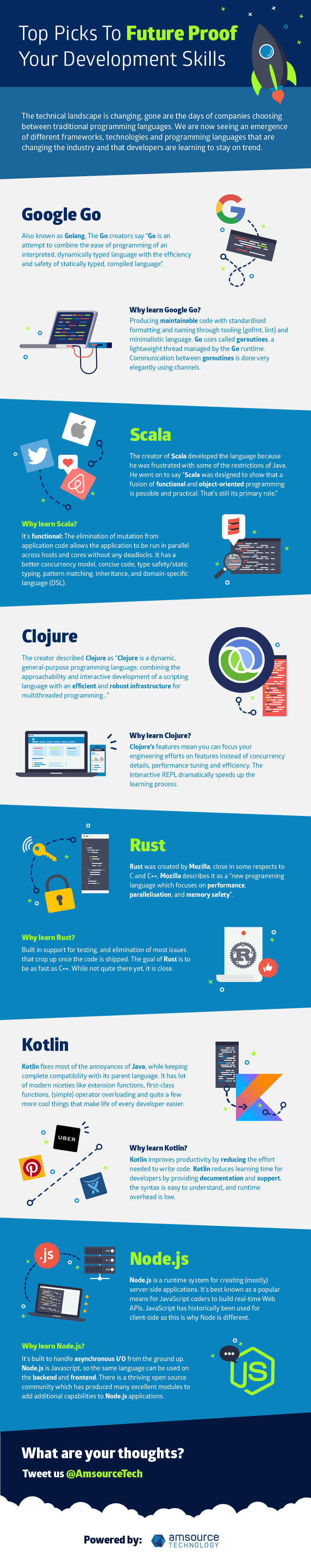 Working in the digital recruitment industry, we are seeing more often than not that hiring organizations are looking for more than the traditional programming languages from candidates. Many software developers are keen to up skill and enhance their knowledge of programming, but it’s important that they know the programming languages that are trending up, and that are set to stand the test of time in the industry in order to ‘future proof’ their skills.