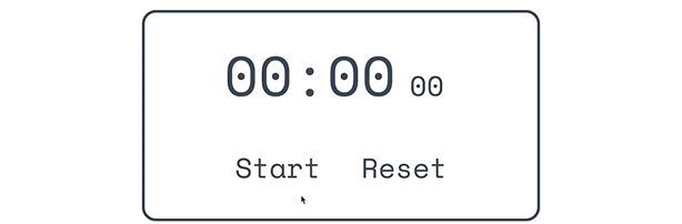 return ( <div> <div>{time.seconds}<small>{time.fraction}</small></div> <button onClick={toggle}>{label}</button> <button onClick={reset}>Reset</button> </div> )}