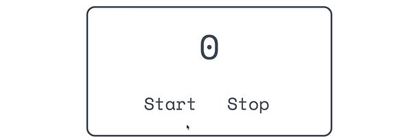 return ( <div> <div>{ticks}</div> <button onClick={start}>Start</button> <button onClick={stop}>Stop</button> </div> )}