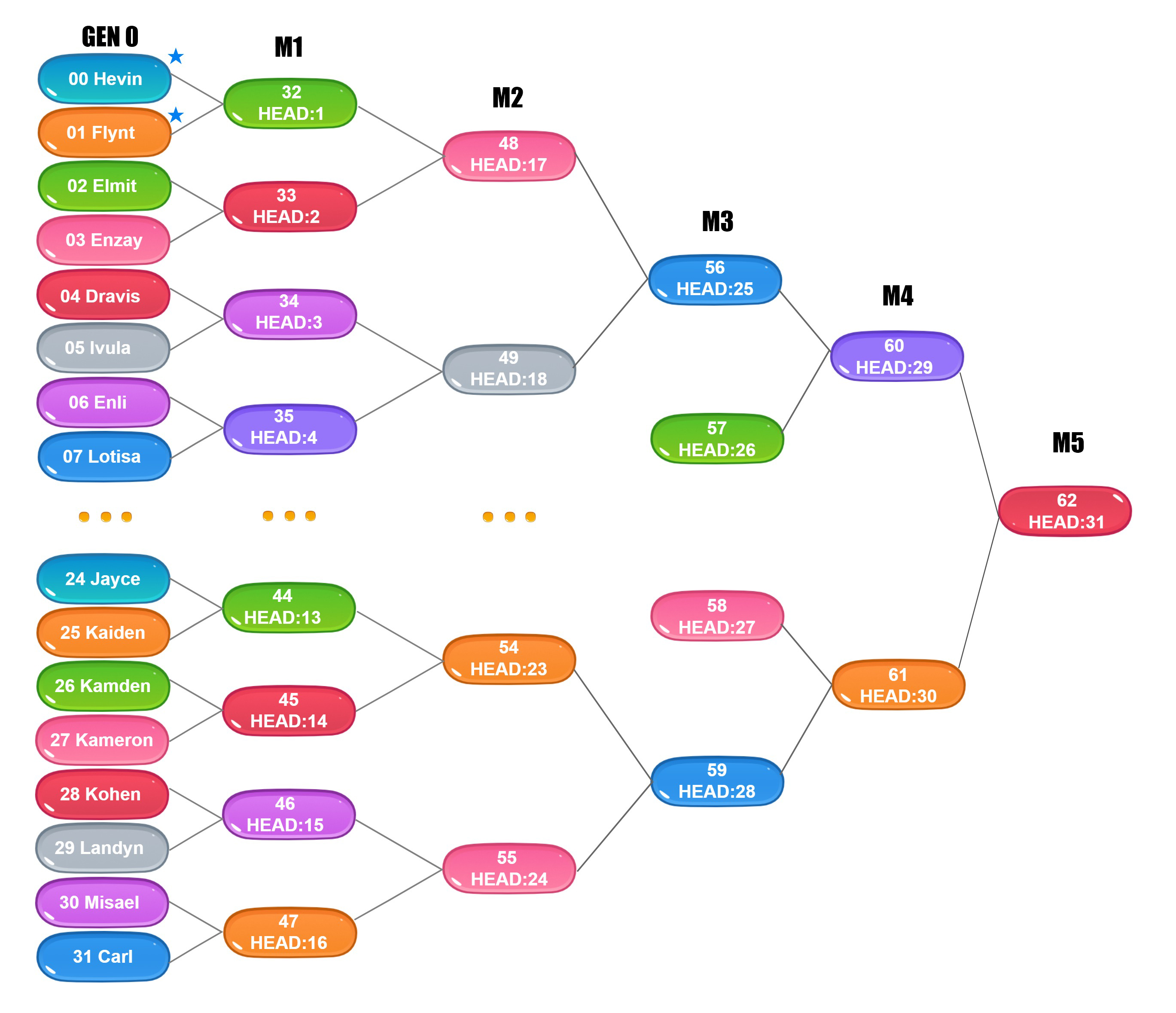 If a mutation happens, they will generate a new Gene. An example of mutation map could be described as below: