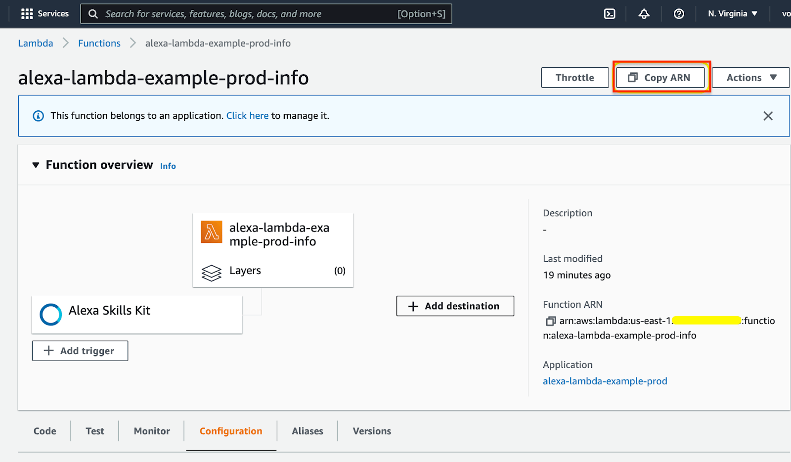 After that, you can go to the AWS lambda function and copy ARN.