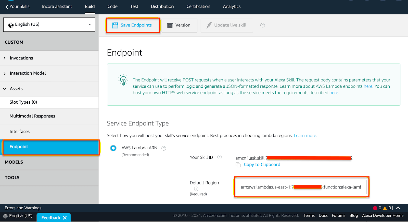 Then, you should return to Alexa Developer Console and finish the initial configurations.