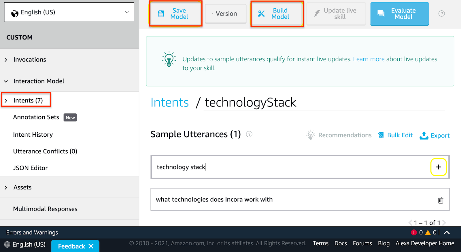 Here you should add the custom handler for this intent such as ‘TechnologyStackIntentHandler’.