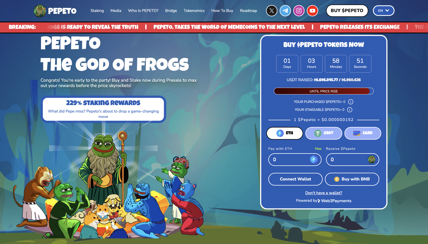 Note: Always buy Pepeto only from the official website: https://pepeto.io. Beware of scams using the project’s name.
