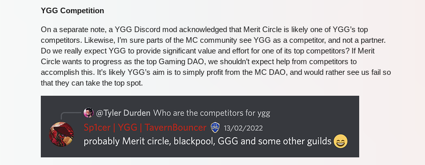 After all, as noted by the proposal drafter himself, YGG was also a P2E gaming protocol, and despite the push for collaboration in the space, they were "competitors" not partners.