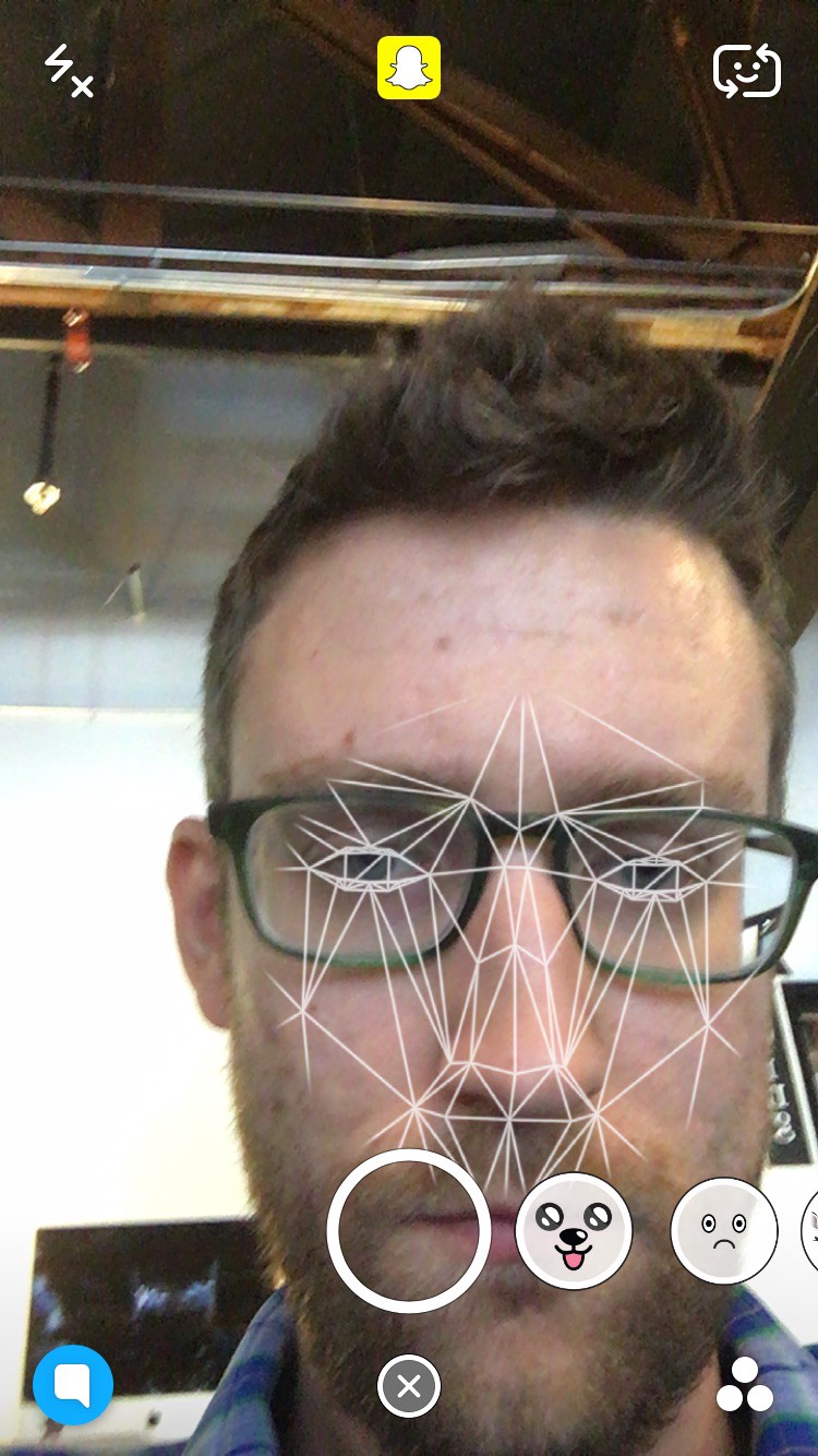 In order to use the silly-cartoon-face-making “Lenses” feature on Snapchat, the interface instructs the user to tap on their face which initiates a facial scan. This captures the user’s face for a seemingly-temporary period so they can apply silly dog ears and rainbow barf to their heart’s content and send it to their friends.