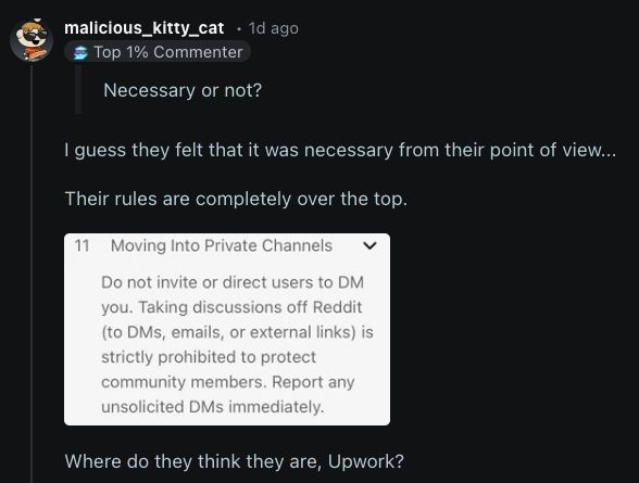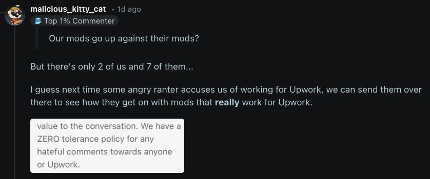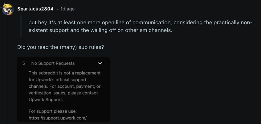 Now, I have said for years that there was no reason to believe Upwork paid any attention to anyone on reddit, at least officially. That might have been true once but was clearly not now.