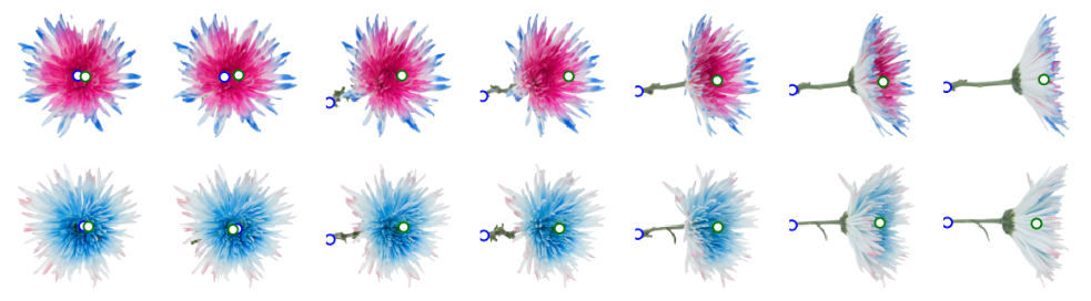 The post processing process contains more steps besides setting key-points. For example setting the stem color. The 3D engine draws artificial stems matching the stem color of the photo. We expect that the same technique will work for this case too.