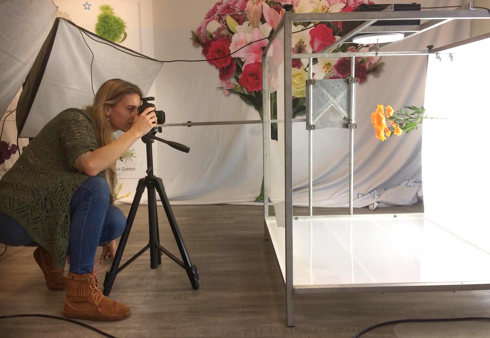 For every new flower they take photos from 7 different angles. In the photo booth, the flowers are automatically rotated by a motor.