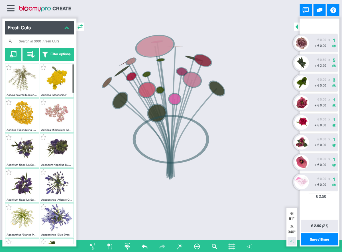 Instead of creating a real physical bouquet, taking a photo of it and sending it off to the client they can execute this process completely online. This saves them a lot of time and money.