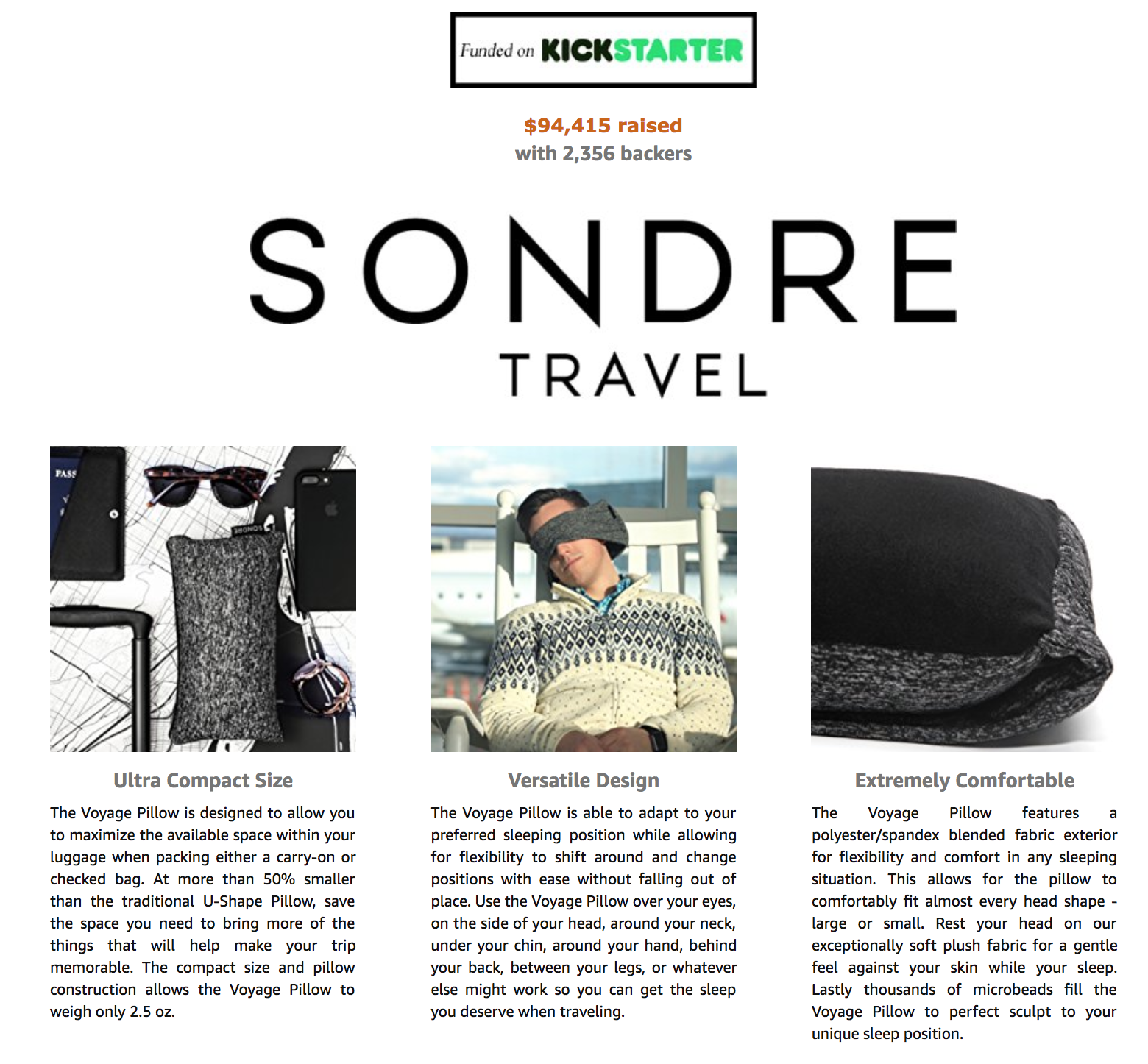 Earlier this year I launched my first crowdfunding campaign for my product called the Voyage Pillow. I initially launched on Kickstarter and moved to Indiegogo InDemand raising $125,393 in pre-orders from early backers for the Voyage Pillow. Our second campaign for the Voyage Bag just launched!