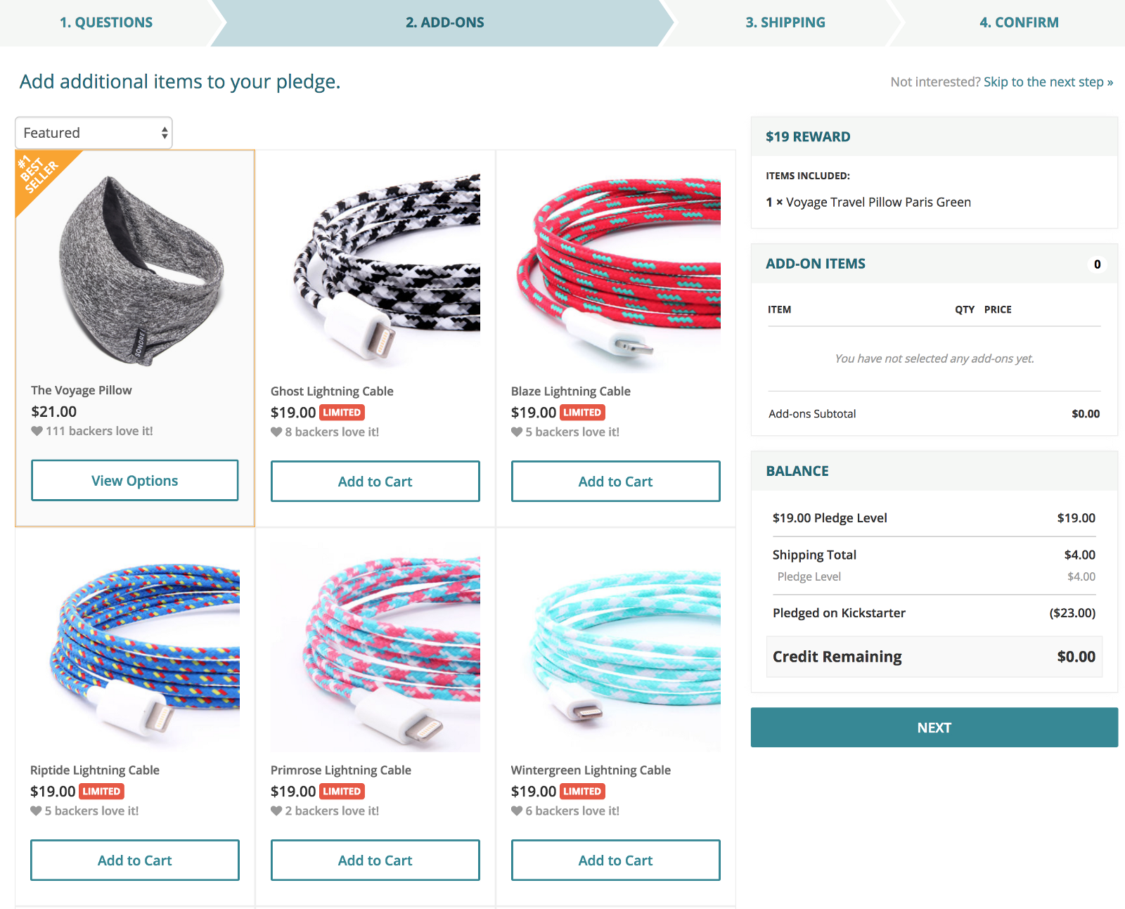Backerkit was an absolute savior for managing each backer; their reward levels, capturing their address, printing shipping labels, and everything in between. The backer survey you are able to create allows you to have each backer choose their reward options, fill out their address, and most important purchase add-ons! You have already earned the trust of your early backers so they may be more inclined to purchase again, and BackerKit allows it to happen very seamlessly and organically.