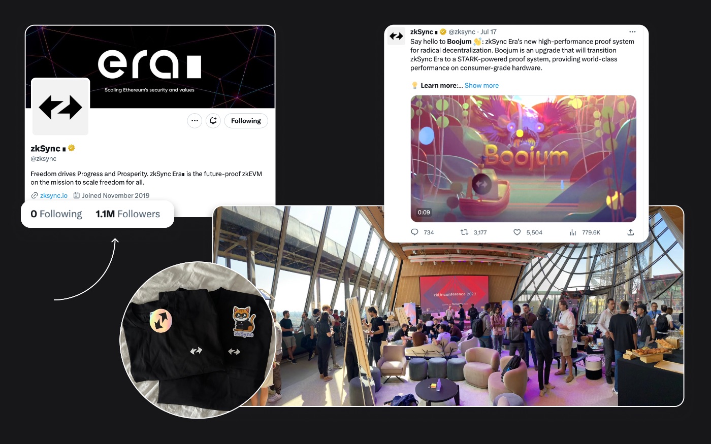 Here is a collage with the number of subscribers and some online and offline activities of the zkSync project: