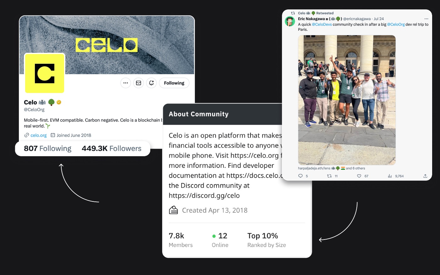 And another collage showing the community size on Twitter and Reddit of Celo Foundation: