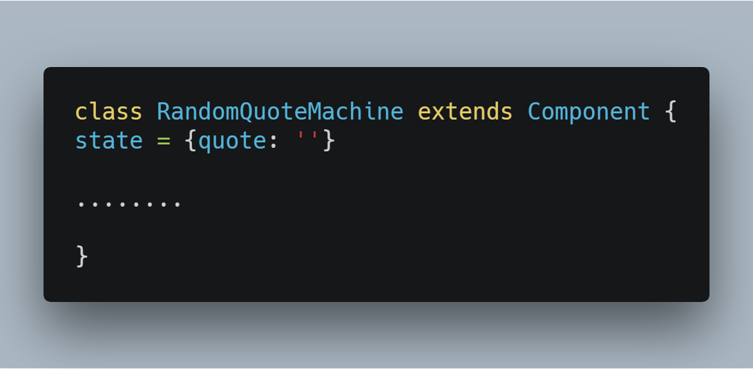 2. Constructor Binding: The first code snapshot had this.handleRandomQuotes and this.getRandomQuote in the constructor . For methods to work well in the class with this , we have to bind it in our constructor . But since we have removed the constructor from our code, there has to be a way to take care of this.