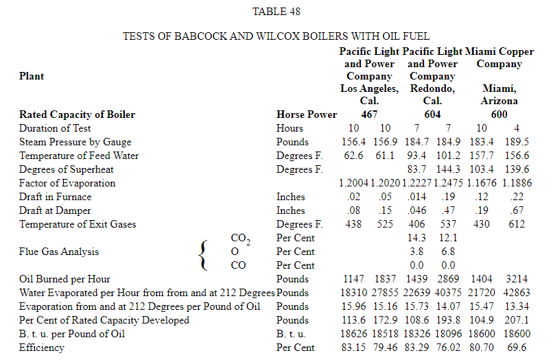 Table 48 gives some representative tests with oil fuel.